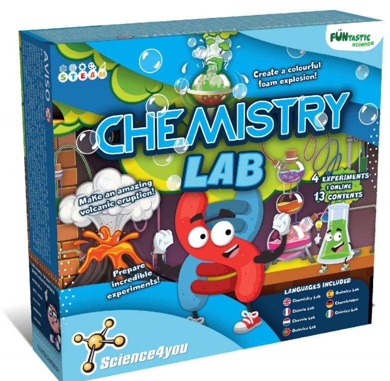 O Laboratório de Química é o kit científico perfeito para as crianças que adoram química e ciência. Através dos 13 conteúdos e das 4 experiências científicas disponíveis neste kit educativo sobre química, podes criar espumas explosivas coloridas e até uma erupção vulcânica.